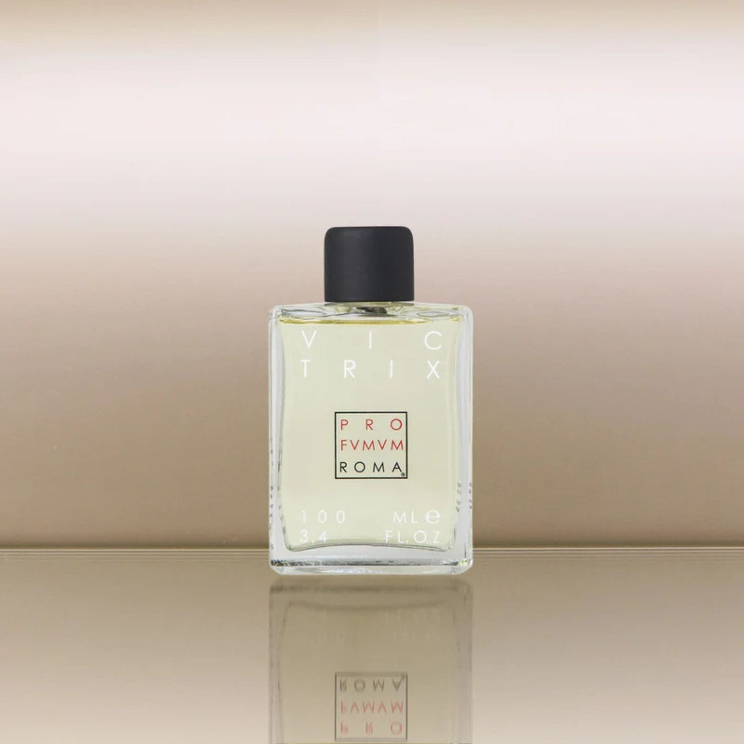 Victrix by Profumum Roma unfolds with an invigorating burst of fresh, green notes, evoking the rich, verdant landscapes of Italy. This vibrant opening, laced with hints of pink pepper, immediately brings a dynamic, peppery spice that symbolizes the untamed spirit of ancient Roman roads. As it settles, bay leaf and coriander emerge, grounding the fragrance with a sophisticated herbal character that recalls the lush, aromatic groves of the Roman countryside. Finally, a warm base of vetiver and musk emerges, adding depth and resonance.