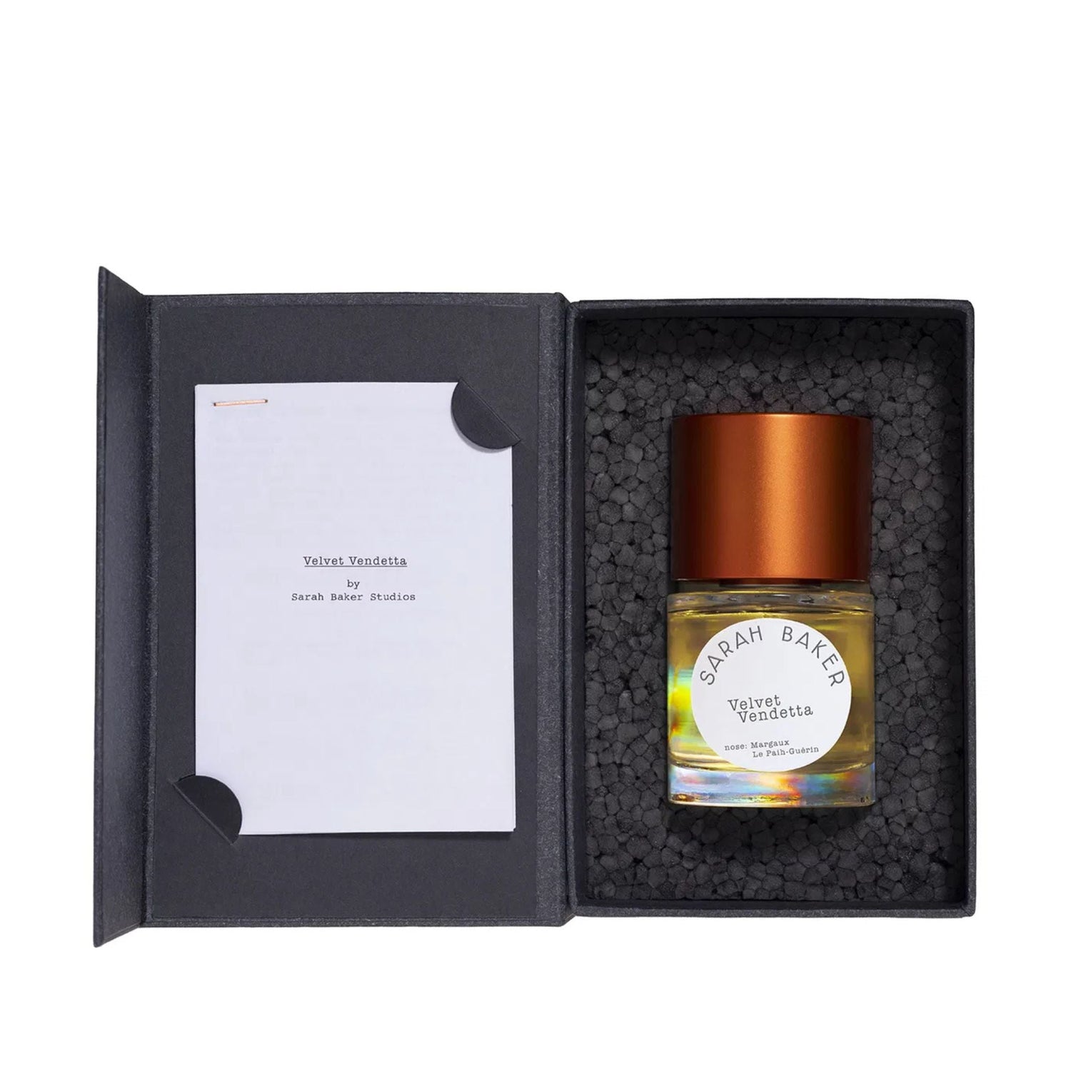 The inspiration behind Velvet Vendetta was to reimagine vanilla as something untamed — a dark, sensual outlaw rather than a sweet, comforting note. Perfumer Margaux Le Paih-Guérin envisioned it as a fragrance born in the Nevada desert at the end of the 19th century, evoking the raw heat, dust, and danger of that world. She wanted to create an olfactory journey through tobacco smoke, bourbon warmth, and sun-baked wood, capturing a mood that feels both animalic and seductive.