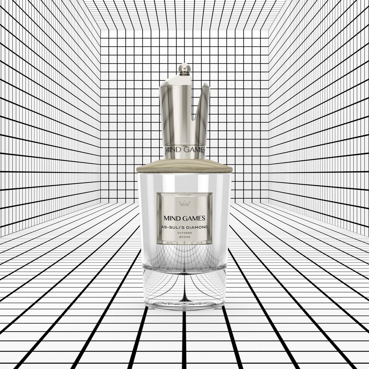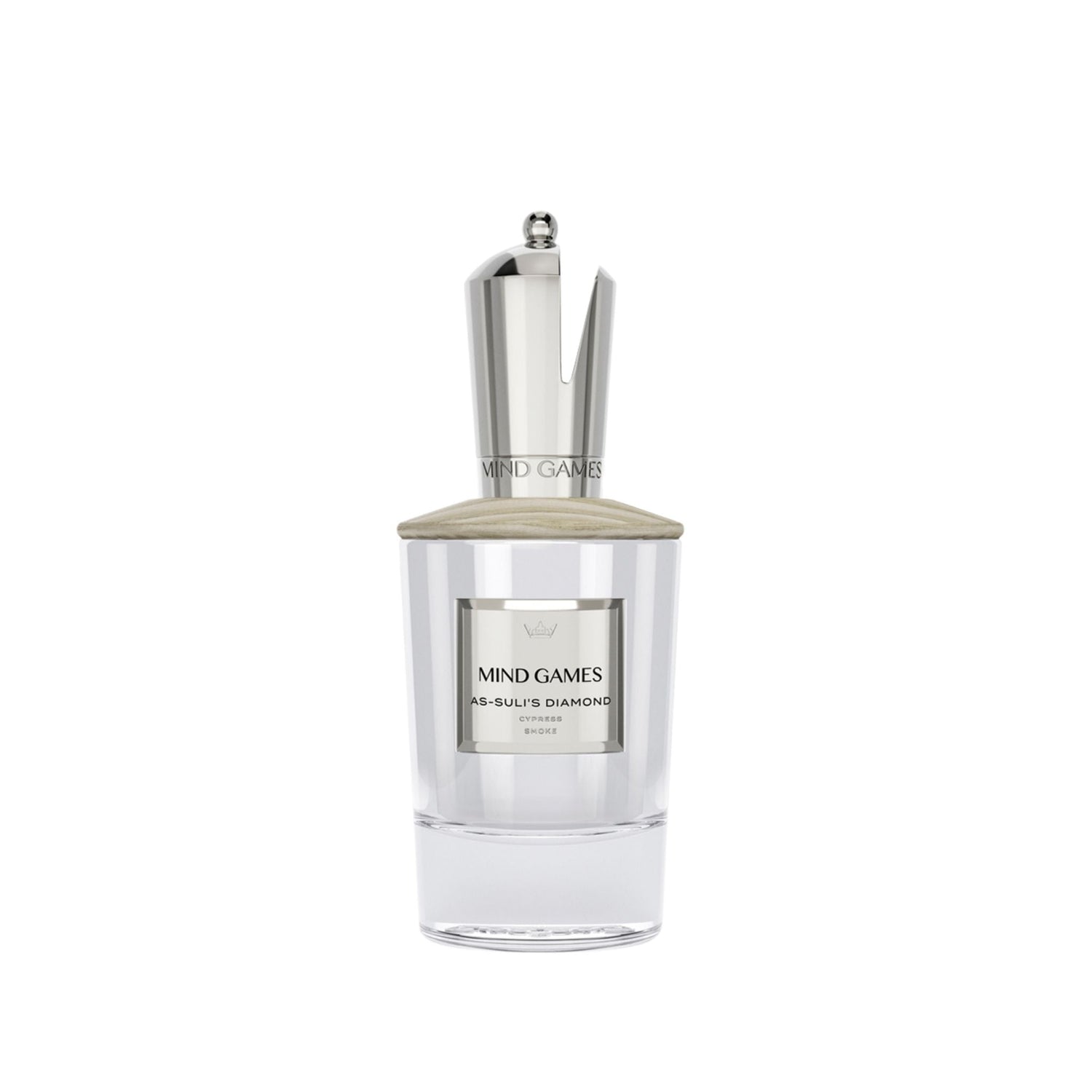 As-Suli's Diamond by Mind Games is inspired by the legendary figure of As-Suli, a renowned philosopher and chess master known for his strategic brilliance. This fragrance aims to capture the essence of understanding complexity and mastering the unsolvable, similar to As-Suli. It is a harmonious blend of Middle Eastern fruits and flowers over resinous woods with smoky hints of incense, creating an ancient and mystical atmosphere. Perfumer Annick Menardo created this composition to balance the resinous incense with softer, fruity floral notes, elevating woody notes to create a vivid image of burning wood.